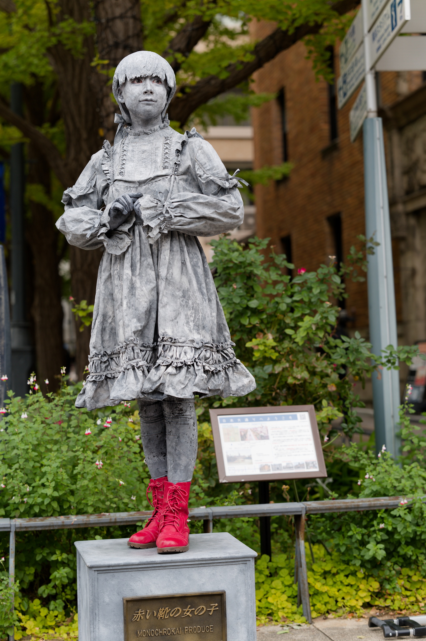 彫刻や人形になりきるスタチュー(Living statue =人間彫刻、彫像芸)のパフォーマーを全国から集め、博物館の建物や街並みを展示会場としてご覧いただこうというイベントで、5回目になるそう。
