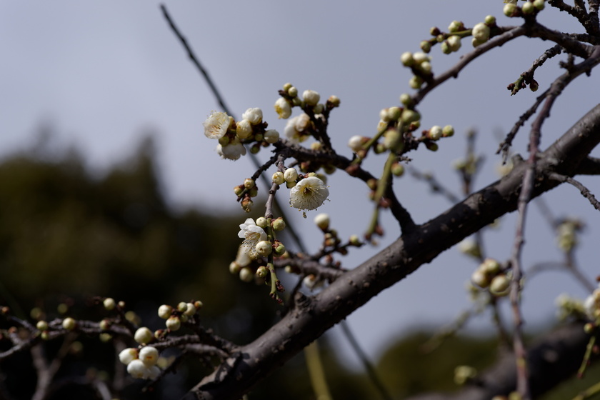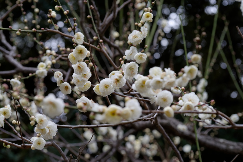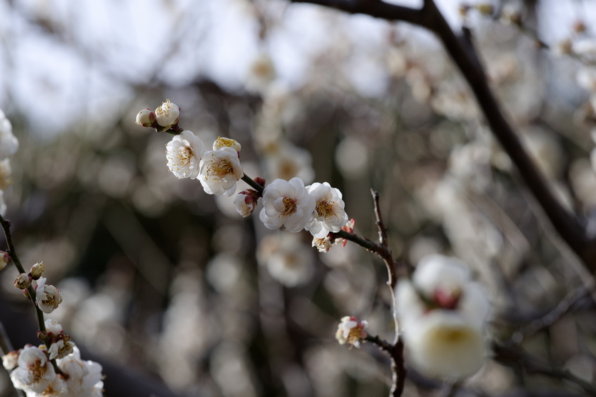 梅が沢山植えられた通りは品種によって咲き方のズレが大きいので、全て一斉に…とはいかないのがフラワーセンターらしさというか。芍薬なんかもそうですよね。牡丹は単体で撮る感じになるから気にならないけど。